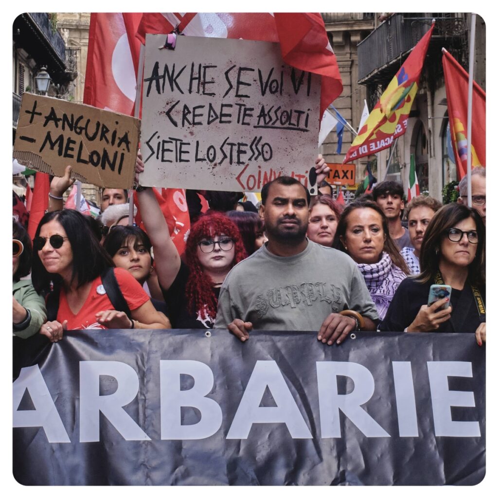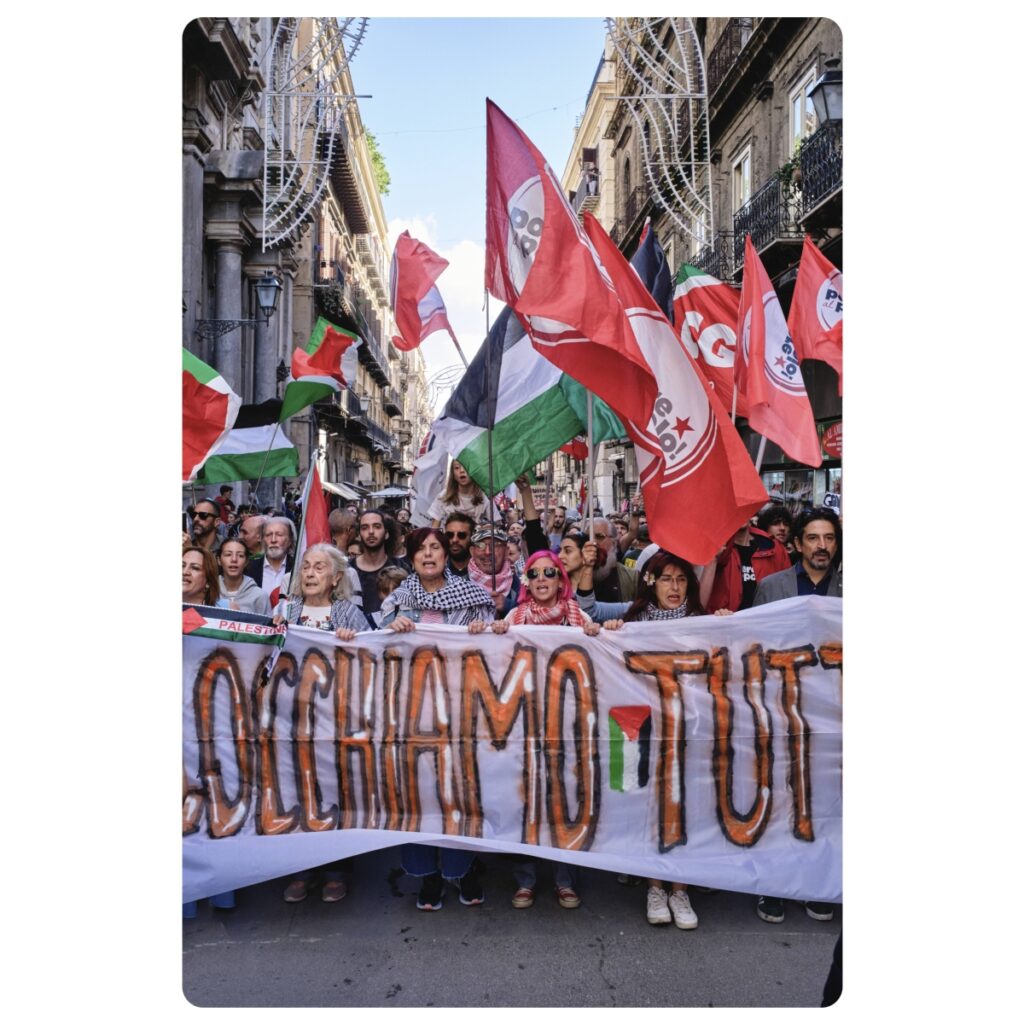 Tutti assieme a testimoniare l’anima bella della città di Palermo, inorridita dal totale fallimento diplomatico, morale e politico del Governo italiano, in particolare su come sta agendo riguardo al massacro di Gaza.
