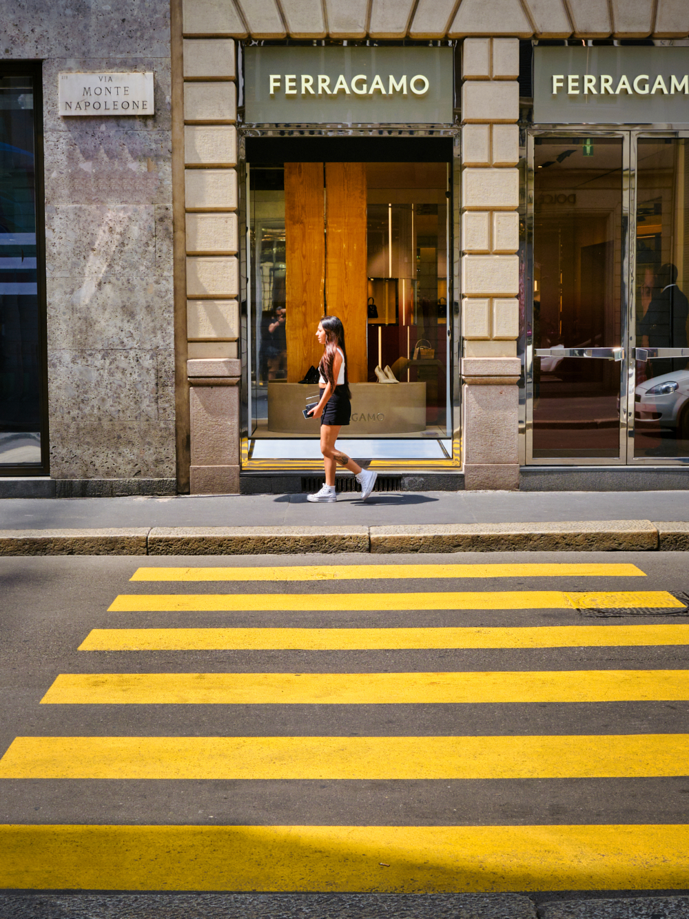 Strisce gialle (via Montenapoleone, Milano, 2023)